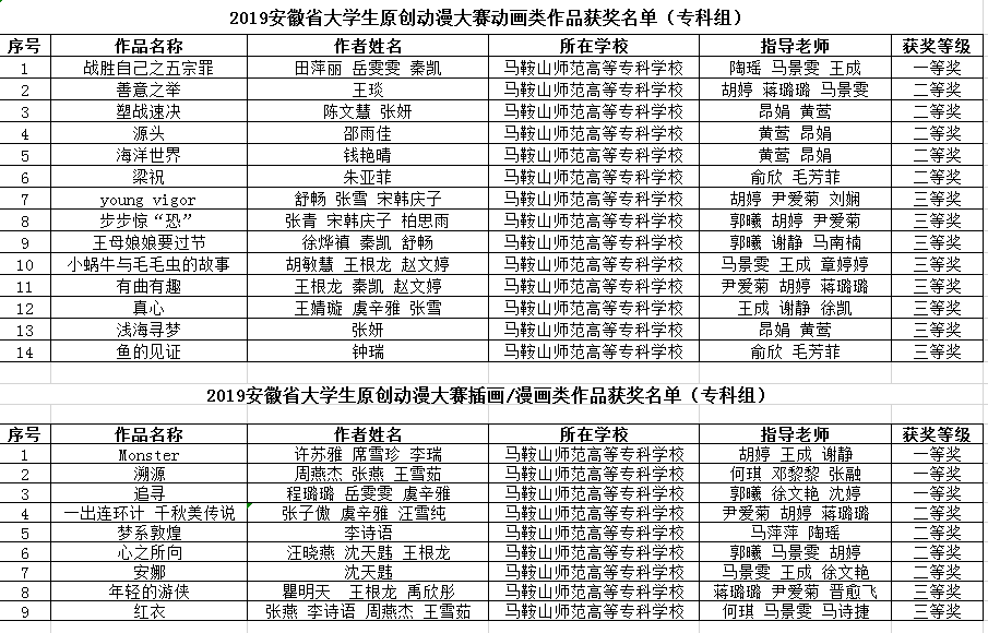 近日,安徽省教育厅主办的2019安徽省大学生原创动漫大赛评选结束。beat365正版唯一官方网站共获得一等奖6项,二等奖12项,三等奖14项,学校也获得大赛优秀组织奖。