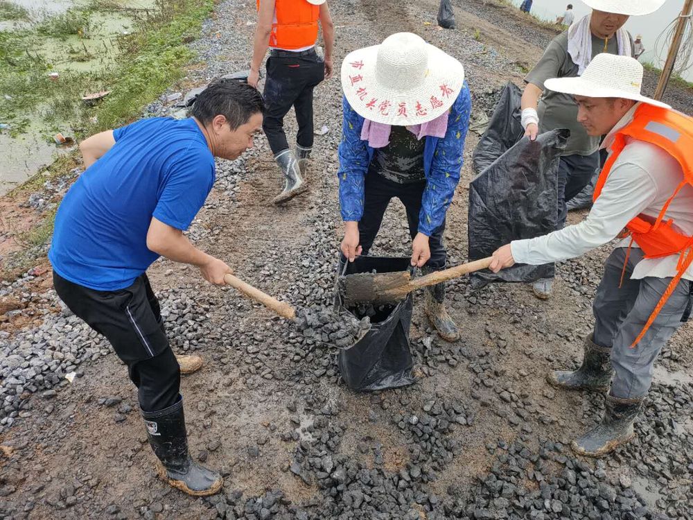 在陈家圩江堤,远远就能看到临时搭建的活动板房,高高插着党员突击队旗。沿着江堤,每隔一段距离就能见到一处防汛值守点,行政教辅党总支第二党支部党员王杰和来自市直机关的党员志愿者凝聚在党旗下,成为防汛抗洪的中坚力量。