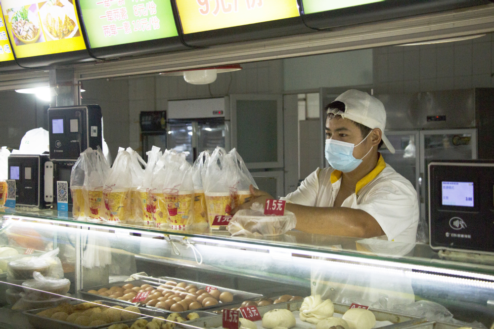 中午12时许,食堂中人声鼎沸,同学们排好队列,一一有序地选餐、打饭。与以往不同的是,学校采取错峰、分批次就餐,食堂门口多出了洗手台,供学生消毒杀菌。