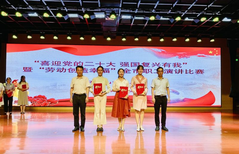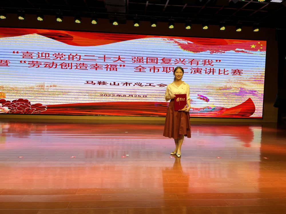 热烈祝贺beat365正版唯一官方网站滨江校区万丽文老师代表学校在马鞍山市总工会举办的“喜迎党的二十大 强国复兴有我”暨“劳动创造幸福”全市职工主题演讲比赛中荣获三等奖,此次比赛汇集全市各行各业的精英,共计参赛选手35人,万丽文总分排名第五,获三等奖。