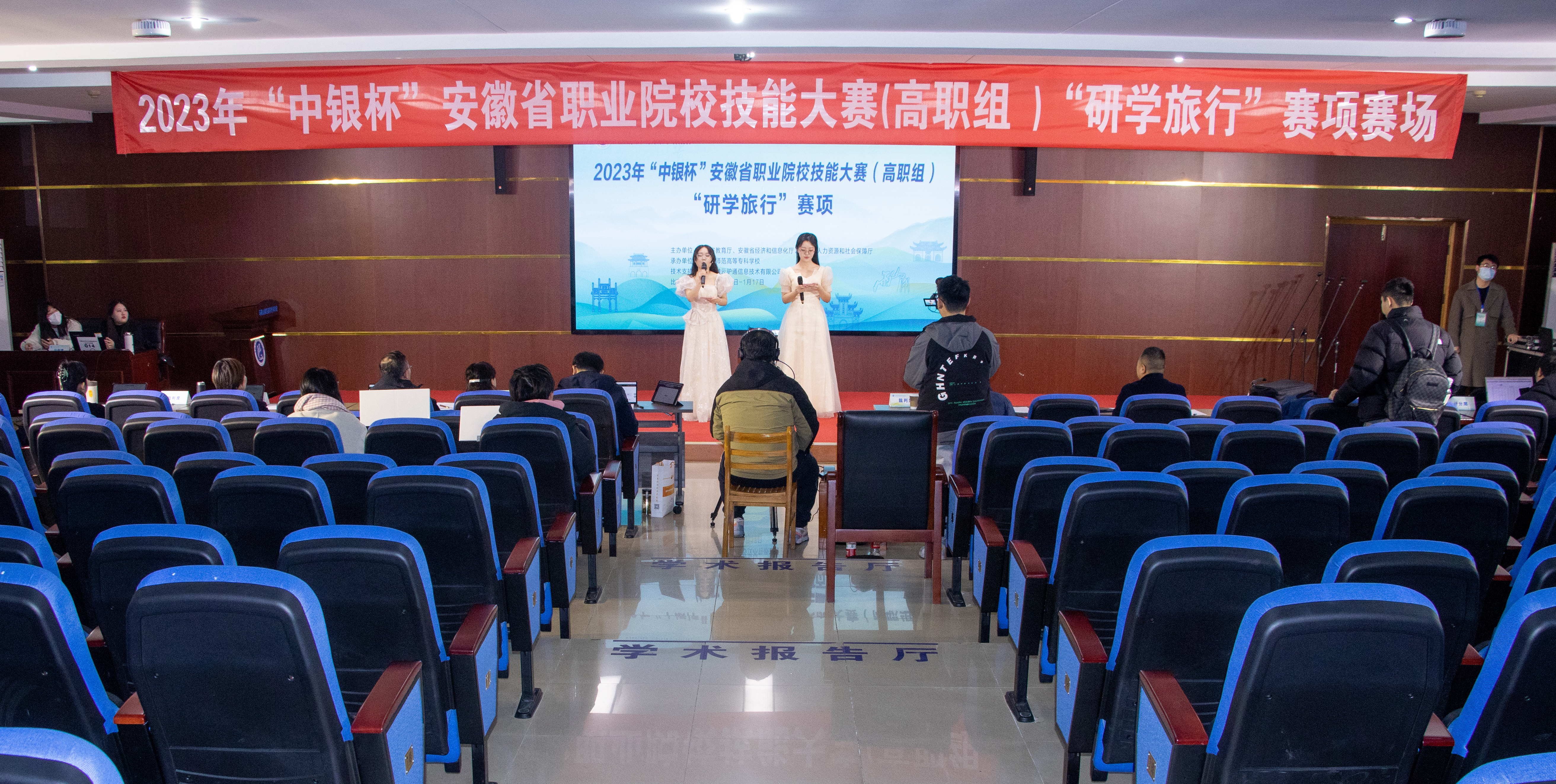 1月14日-15日,新闻传播大类“短视频创作与运营”赛项在安徽广播影视职业技术学院举行,来自全省42所高校共74支队伍的296名选手展开角逐。在原经管系的大力支持下,经过宣传报名、校赛选拔、集中培训,最终黄凌骜、徐景两位教师指导的短视频创作与运营2队王佳宜、李双霞、鲍成伟、周静怡同学斩获一等奖,黄凌骜、沈丹琴两位教师指导的短视频创作与运营1队何晨、詹纪康、巩静娴、周丽萍同学荣获三等奖,证明了学校新闻专业的实力。