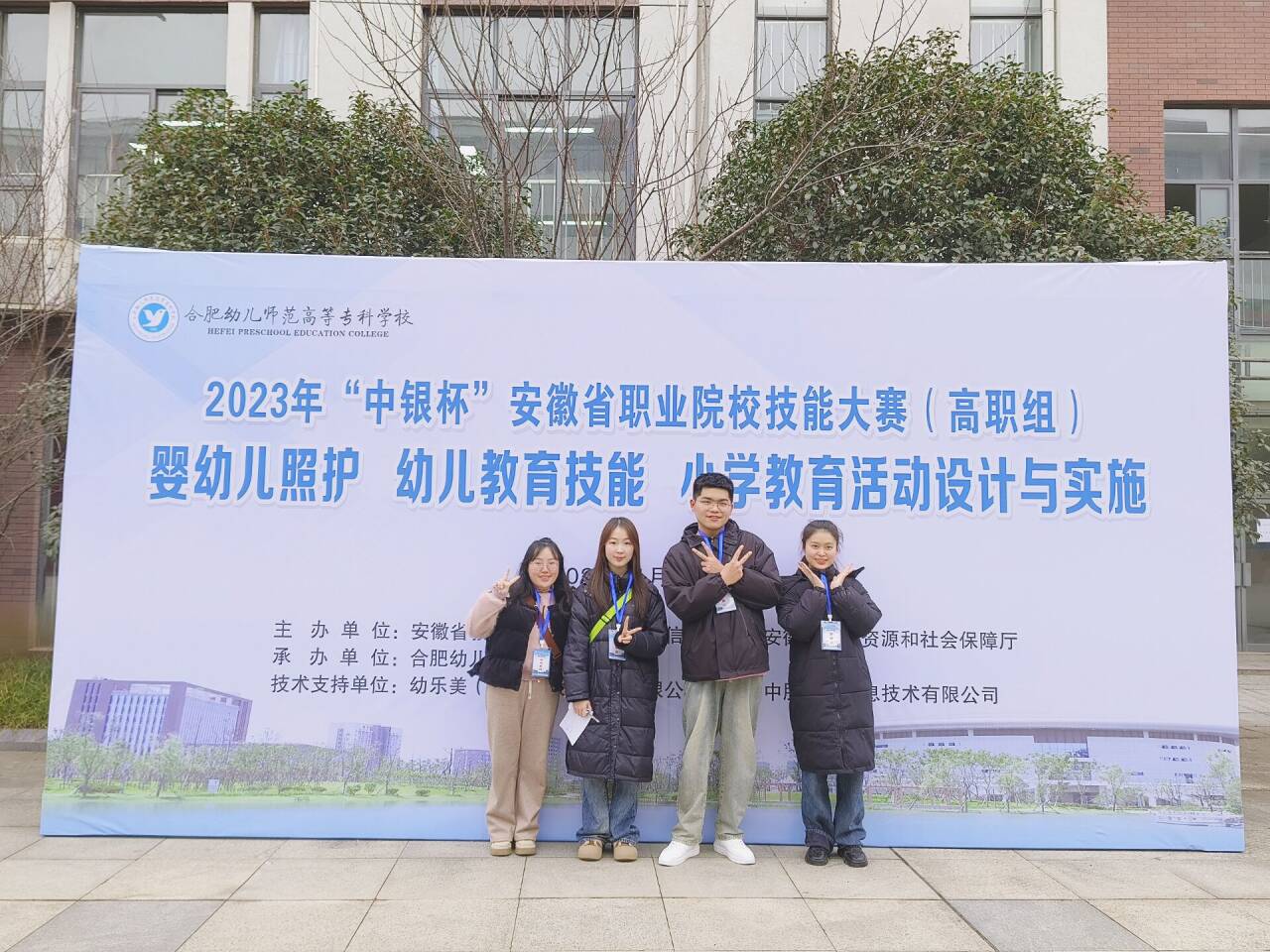 于此同时,其他代表队则奔赴各个赛项承办院校,在全省各地打响“马师专进攻战”。1月13日至16日,体育与教育大类“婴幼儿照护”赛项在合肥幼儿师范高等专科学校举行,来自省内27所院校53支队伍159名参赛学生同台竞技。学前教育学院积极备赛,通过学生报名、层层遴选的方式组建参赛队,最终王敏、石娟两位老师指导的婴幼儿照护1队丁墨涵、张悦、蒋祾同学荣获一等奖,鲁华倩、褚清新老师指导的婴幼儿照护2队刘姝麟、王阿云、贺心茹同学荣获二等奖,在兄弟院校中展现了学校学前教育学院的风采。