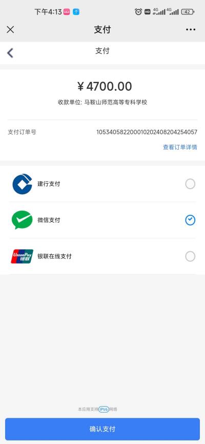 5.跳转至支付界面,点击确认支付,即可使用微信或支付宝绑定的钱包或银行卡支付