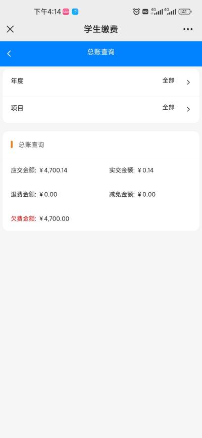 6.支付完成后,进入首页-->学费查询-->总账查询。查看缴费情况