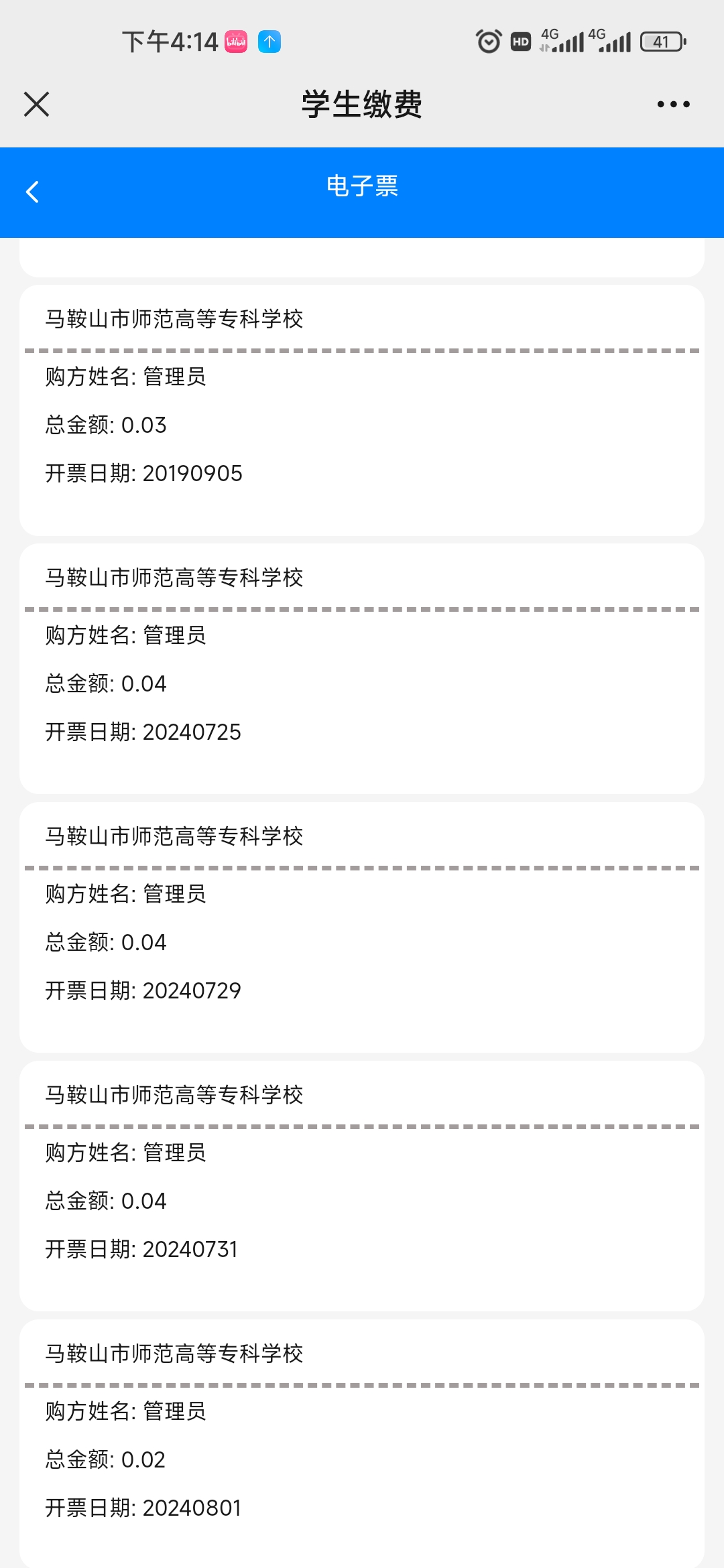 7.如果需要发票,请在完成缴费两个工作日后,下载票据。首页-->电子票-->选择缴费日期-->点击缴费项目,长按票据点击保存,可存储至手机
