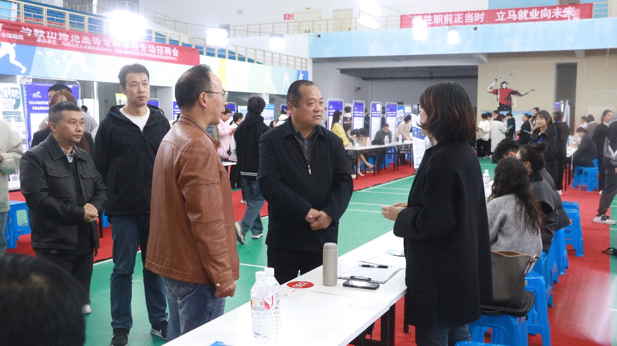 为拓宽毕业生就业渠道,搭建用人单位与毕业生双向选择平台,促进学校毕业生高质量充分就业,11月20日下午,beat365正版唯一官方网站开展2024年秋季马鞍山市“才聚诗城高校行”专场校园招聘会,校党委副书记、副校长杜维斌到招聘会现场检查指导。