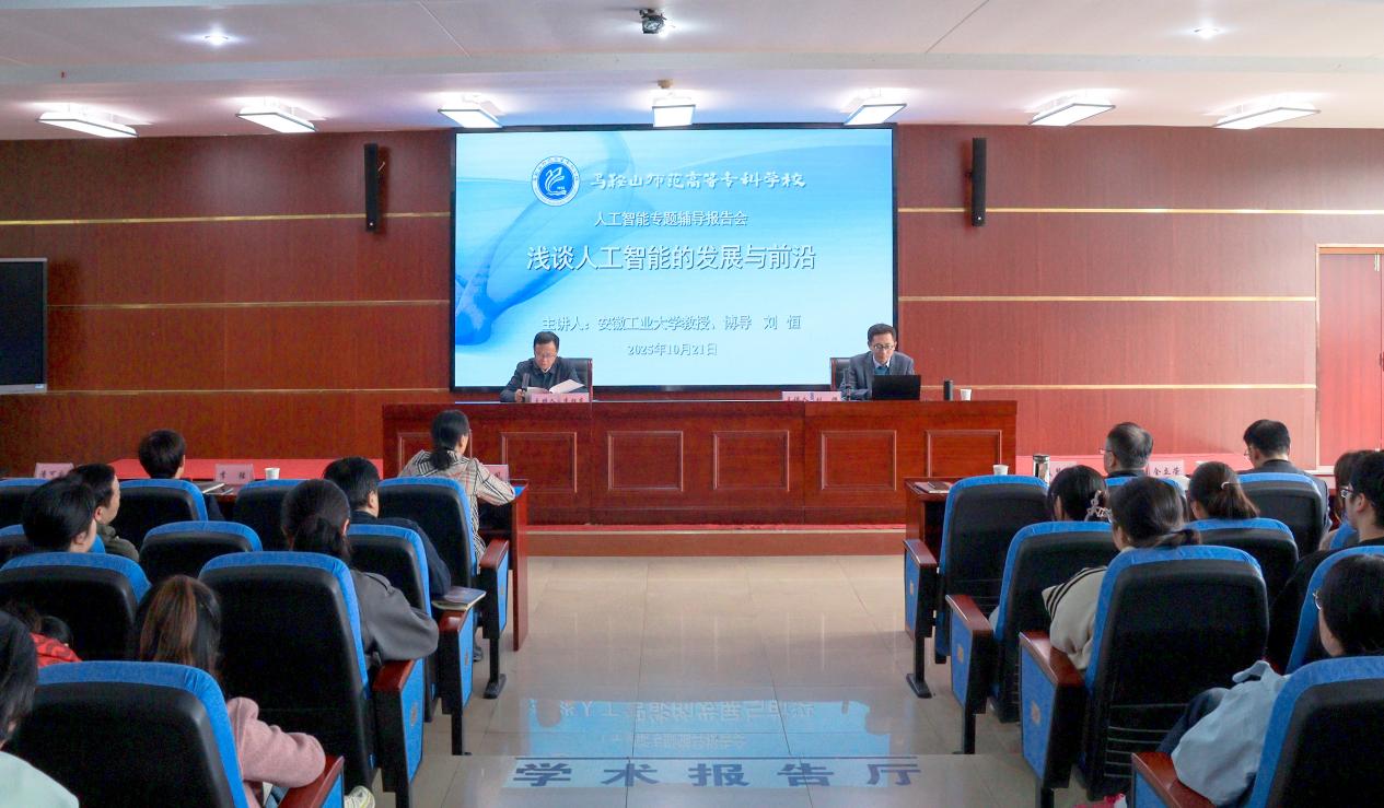 为深入贯彻落实习近平总书记关于人工智能的重要论述,进一步提高学校师生人工智能素养,深化人工智能赋能教育教学能力提升改革,10月21日,beat365正版唯一官方网站举行党委理论学习中心组第11次集中学习会,邀请安徽工业大学刘恒教授作《浅谈人工智能的发展与前沿》专题辅导报告。党委书记李怀东主持报告会并总结讲话。党委副书记、校长刘淑凤及全体党委班子成员参加。