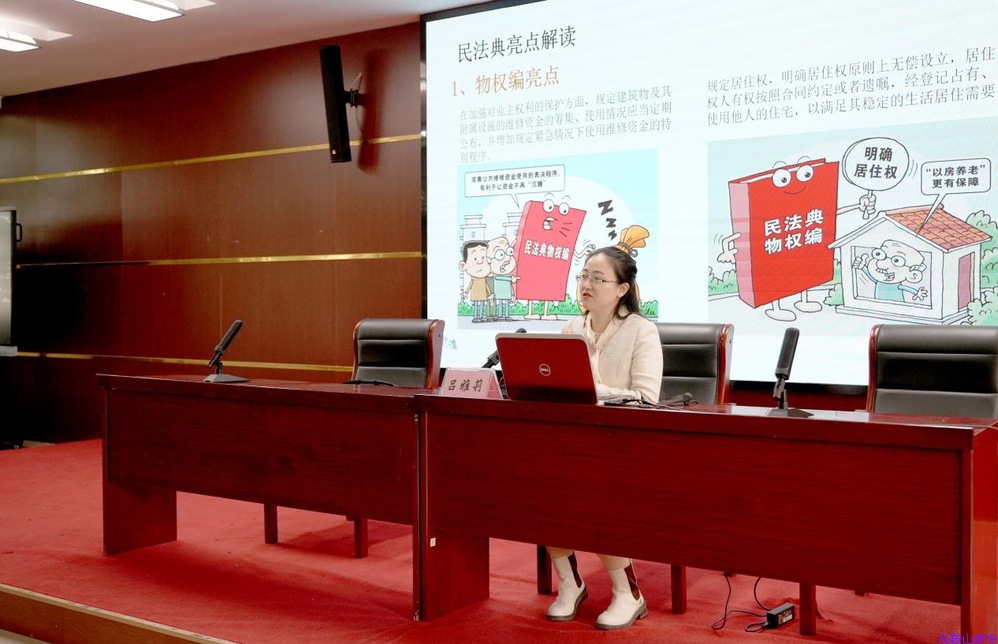 讲座中,吕雅莉围绕增强宪法意识、促进社会和谐、《民法典》亮点解读、劳动者权益保护、大学生可能遇到的法律问题等核心内容展开系统讲解。她首先从宪法的重要地位入手,深入浅出地阐述了宪法作为国家根本大法在治国理政中的核心作用,强调增强全民宪法意识是推进全面依法治国的基础,随后,她结合贴近生活的实际案例,聚焦《民法典》中与日常生活相关的亮点条款,重点解读了《民法典》在人格权保护、婚姻家庭等方面的创新条款,针对当前社会热点,她还专门讲解了劳动者权益保护的相关法律知识,并考虑到在场大学生的实际需求,细致讲解了实习就业、租房消费、校园贷风险防范等实用法律问题,为不同群体提供了精准的法律指导。