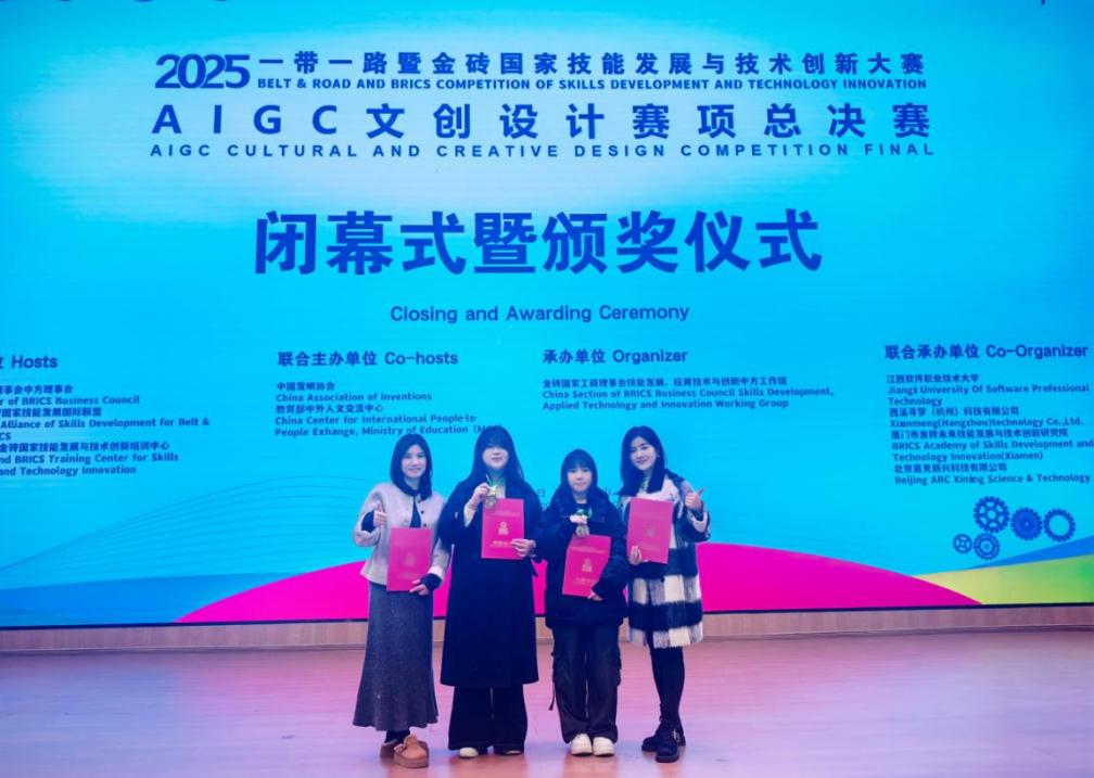2025年12月19日至21日,“一带一路”暨金砖国家技能发展与技术创新大赛AIGC文创设计赛项全国总决赛在江西软件职业技术大学井冈山校区举办。大赛吸引全国20余个省(自治区、直辖市)500余所高校的2311支队伍报名,经区域选拔赛角逐,85所院校的160支代表队晋级总决赛。beat365艺术设计学院学子历经四个多月备赛,斩获赛事一、二、三等奖各一,学校获评最佳组织奖。